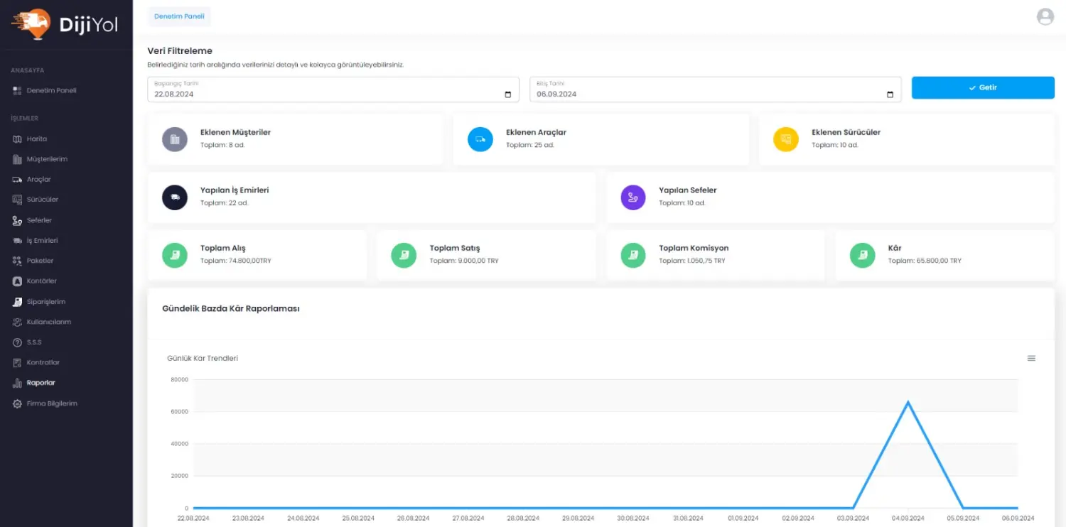 Sefer yönetimi, iş emirlerinin planlanması ve araçların izlenmesiyle etkin bir şekilde kontrol edilir. Teslimatlar zamanında gerçekleştirilir, operasyonel aksaklıklar en aza indirilir.