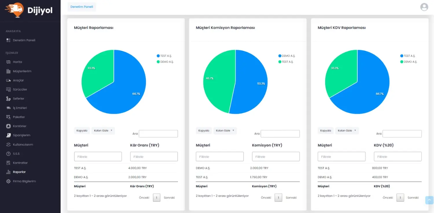 Dijiyol, kullanıcılarına donanımsız olarak hem kendi hem de dış kaynaklı araçları izleme imkânı sunarken, müşterilerinin de kendi müşterilerine harita üzerinden canlı takip olanağı sağlar. Bu özellik, teslimat sürecinde şeffaflığı artırarak müşteri memnuniyetini yükseltir. İş emirleri, anlık izleme ve raporlama özellikleriyle tüm araç filoları tek bir platformdan kolayca yönetilirken, kullanıcılar hem kontrolü ele alır hem de müşteri ilişkilerini güçlendirerek rekabet avantajı kazanır.